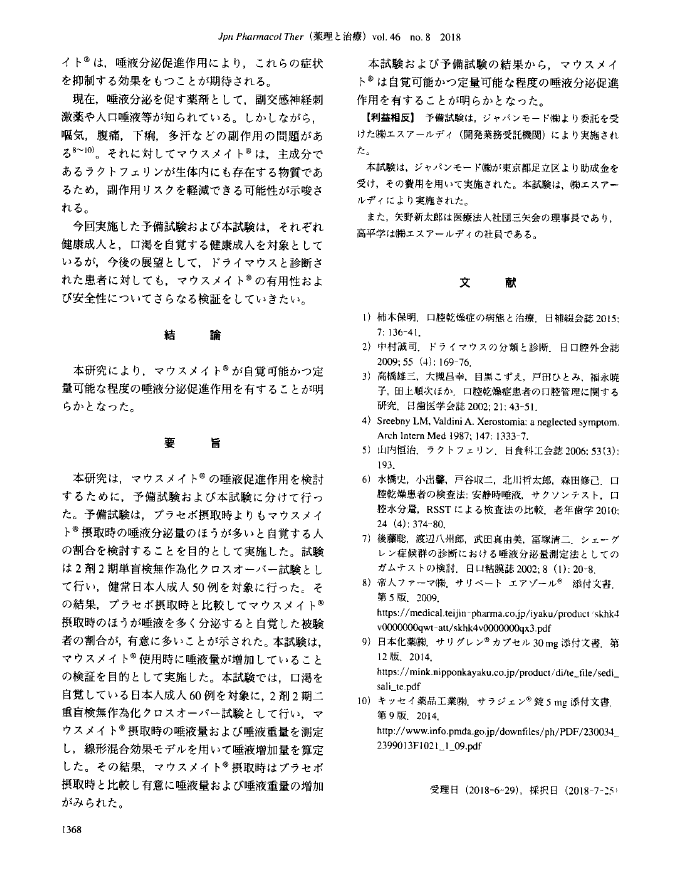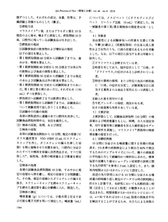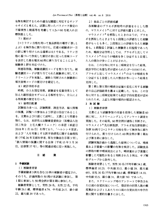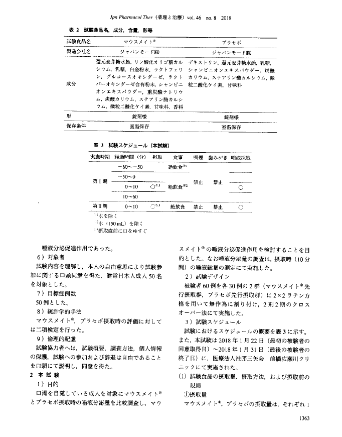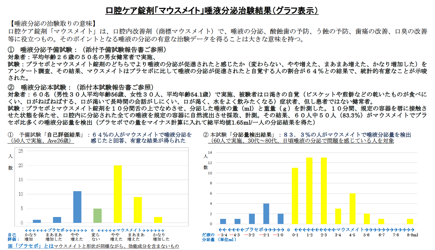 マウスメイト錠剤での臨床試験での効能