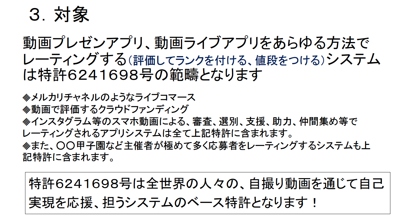 次々に出てくる動画プレゼンアプリの多くは特許第6241698号の特許範囲!となり、